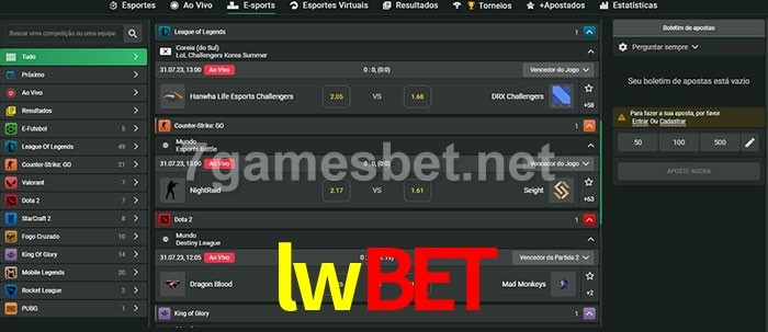 A aposta lwbet oferece aos jogadores a experiência mais conveniente de apostas em eSports!